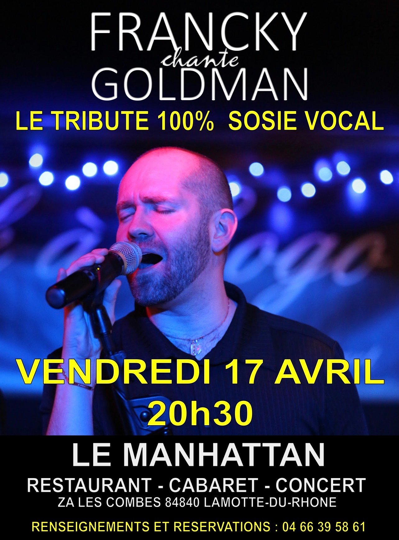 les plus beau titres de Goldman chantés par Francky entrée gratuite repas à la carte réservation souhaitée