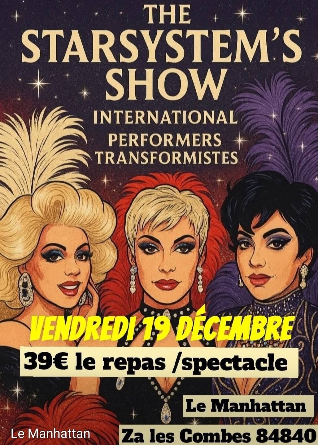 Soirée Cabaret Spectacle transformiste Repas Spectacle 39 €